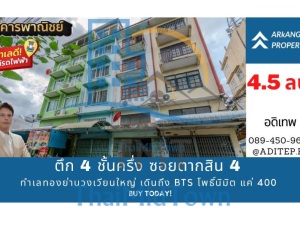 ขายอาคารพาณิชย์ 4.5 ชั้น ซอยตากสิน 4 ทำเลทองย่านวงเวียนใหญ่ เดินถึง BTS โพธิ์นิมิตร แค่ 400 เมตร