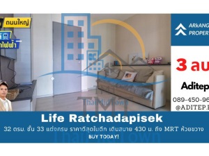 ขายด่วน! คอนโด Life รัชดาภิเษก 1 นอน 32 ตรม. ชั้น 33 แต่งครบ ราคาดีสุดในตึก เดินสบาย 430 ม. ถึง MRT ห้วยขวาง