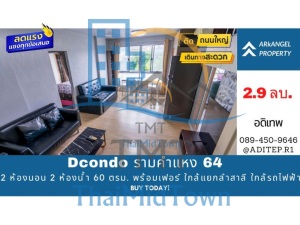 ขายคอนโด 2 ห้องนอน ราคาถูก Dcondo รามคําแหง 64 ขนาด 60 ตรม. 2 ห้องนอน 2 ห้องน้ำ พร้อมเฟอร์นิเจอร์ ติดถนนใหญ่ ใกล้รถไฟฟ้า 2 สาย