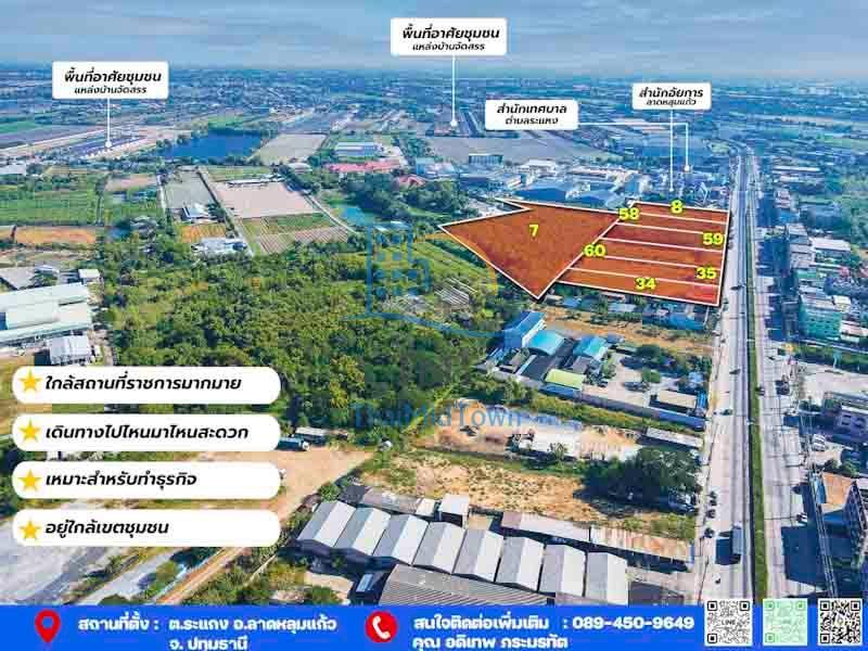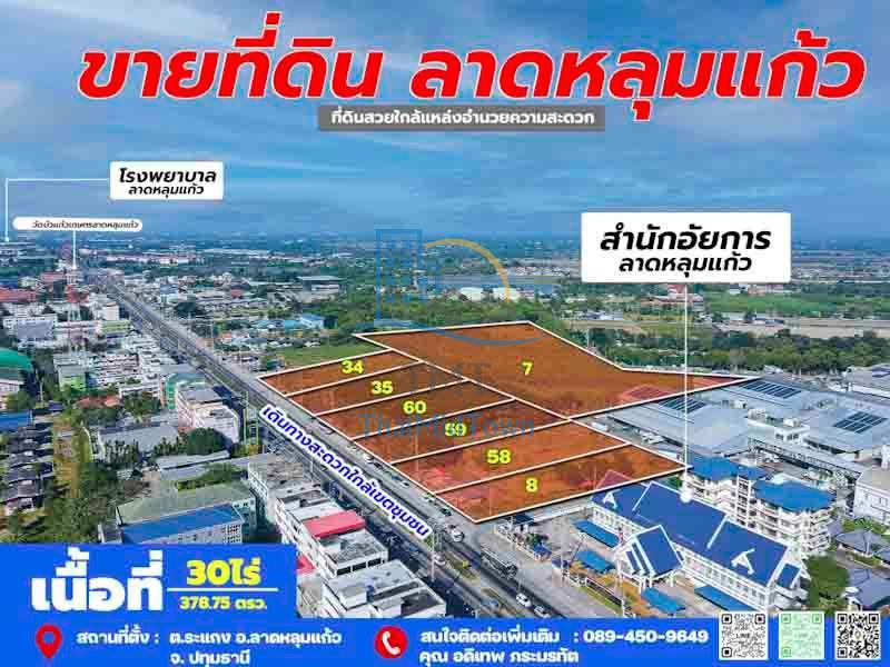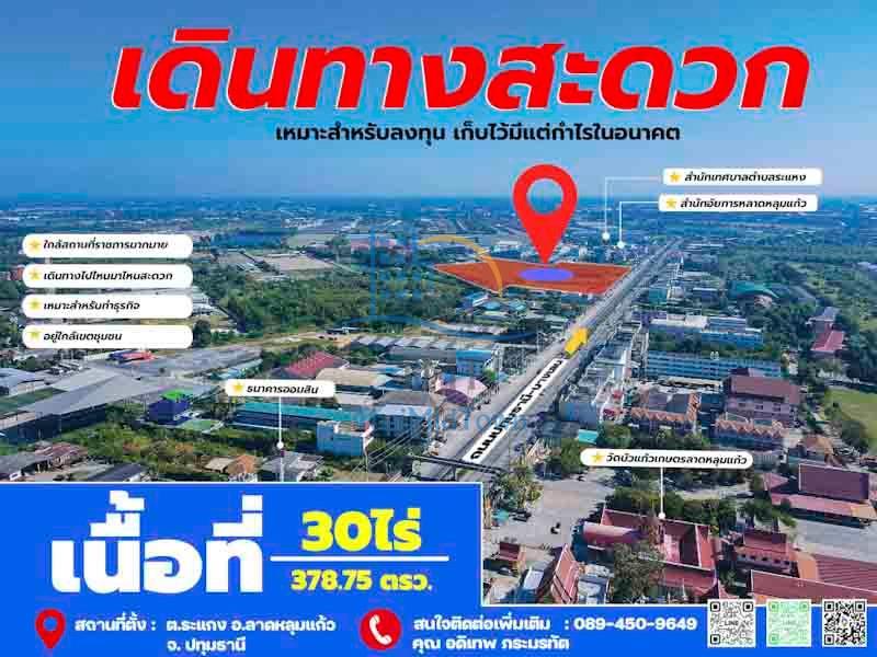 ที่ดินลาดหลุมแก้ว 30 ไร่ ใกล้ สํานักอัยการลาดหลุมแก้ว ซอย- ถนนปทุมธานี–บางเลน ต.ระแหง อ.ลาดหลุมแก้ว ปทุมธานี