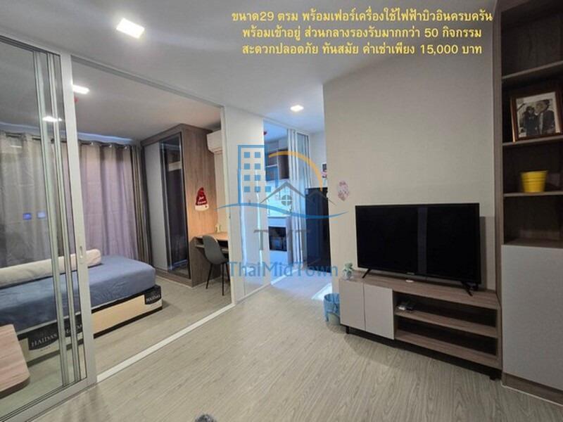 ปล่อยเช่า คอนโดห้องใหม่ ห้องสวย เฟอร์เครื่องใช้ไฟฟ้าครบ เพิ่มพื้นที่ใช้สอยกว้างขวาง พร้อมเข้าอยู่! ค่าเช่าเพียง 15,000 บาทต่อเดือน