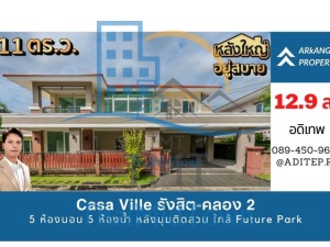 ขายบ้านเดี่ยว Casa Ville รังสิต–คลอง 2 หลังมุม 111 ตรว. 5 ห้องนอน 5 ห้องน้ำ ใกล้ Future Park ติดถนนรังสิต–นครนายก เหมาะสำหรับครอบครัวใหญ่