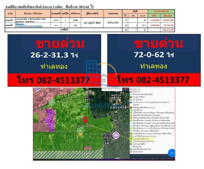 ขายที่ดินเปล่าบางปะกงฉะเชิงเทรา ติดถนนทางหลวง 200 พื้นที่สีส้มจุดรับรองการพัฒนาเมือง