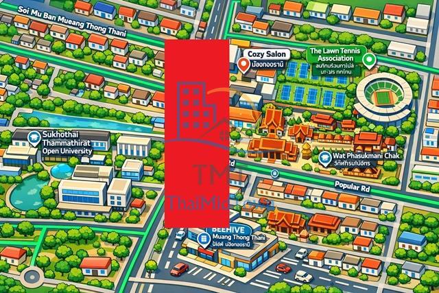 เมืองทองธานี 4.5 ชั้น ม.สุโขทัย 900 ม. MRTแจ้งวัฒนะปากเกร็ด 28 อิมแพค 5นอน ใกล้ ม.สุโขทัยธรรมาธิราช 900 ม. อิมแพคอารีนา 1 กม. เอสซีจีสเตเดียม 1.2 ซอยติวานนท์ ถนนแจ้งวัฒนะ-ปากเกร็ด 31-35 ต.บางพ