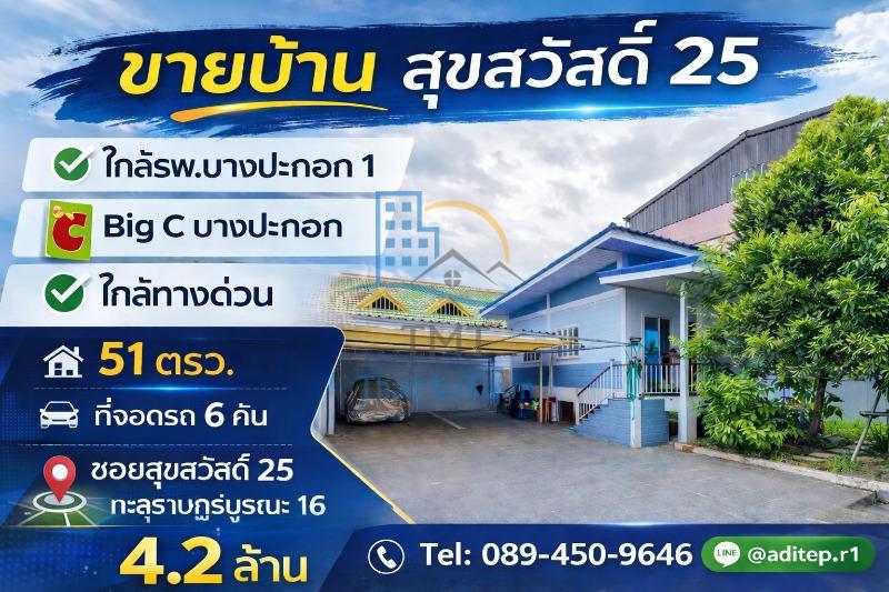 บ้านสุขสวัสดิ์ 25 ใกล้ รพ.บางปะกอก 1 ซอยสุขสวัสดิ์ 25 ถนนสุขสวัสดิ์ แขวงบางปะกอก เขตราษฎร์บูรณะ กรุงเทพมหานคร