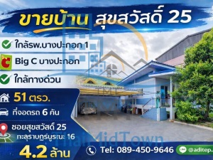 ขายบ้านชั้นเดียว ซอยสุขสวัสดิ์ 25 ทะลุราษฏร์บูรณะ 16 บ้านเดี่ยวกรุงเทพฝั่งธน 51 ตรว ทำเลดี ใกล้รพ.บางปะกอก 1 ใกล้ทางด่วน
