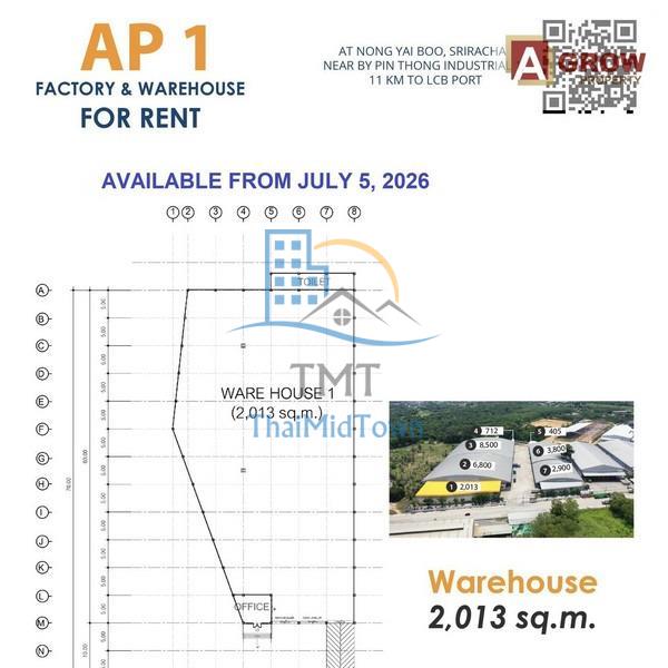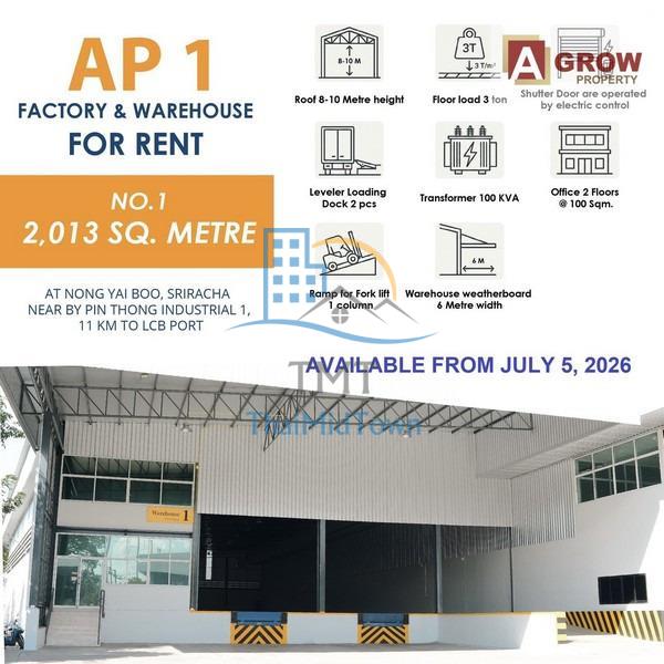 ให้เช่าโรงงาน/โกดัง ขนาด 2,013 ตร.ม. อำเภอศรีราชา จังหวัดชลบุรี ใกล้ - ใกล้นิคมอุตสาหกรรมปิ่นทอง 1 - ใกล้ท่าเรือ LCB 11 กิโลเมตร ซอย- ถนน- ต.ศรีราชา อ.ศรีราชา ชลบุรี