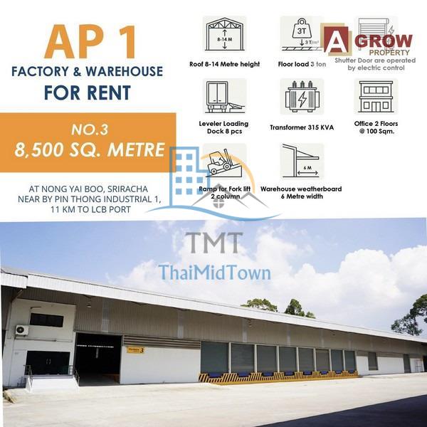 ให้เช่าโรงงาน/โกดัง ขนาด 8,500 ตร.ม. อำเภอศรีราชา จังหวัดชลบุรี ใกล้ - ใกล้นิคมอุตสาหกรรมปิ่นทอง 1 - ใกล้ท่าเรือ LCB 11 กิโลเมตร ซอย- ถนน- ต.ศรีราชา อ.ศรีราชา ชลบุรี