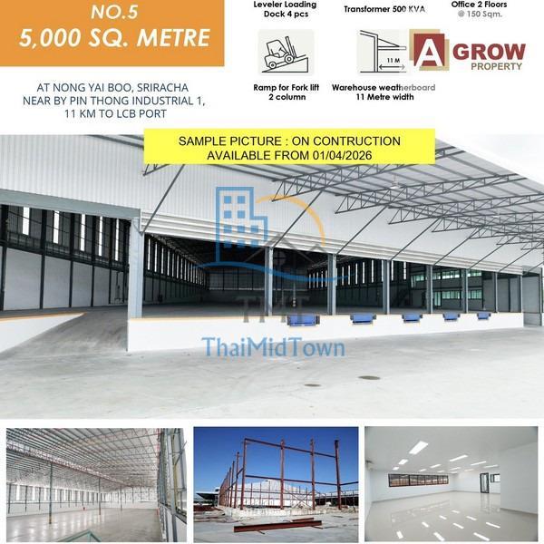 ให้เช่าโรงงาน/โกดัง ขนาด 5,000 ตร.ม. ศรีราชา ชลบุรี ใกล้ - ใกล้นิคมอุตสาหกรรมปิ่นทอง 1 - ใกล้ท่าเรือ LCB 11 กิโลเมตร ซอย- ถนน- ต.ศรีราชา อ.ศรีราชา ชลบุรี