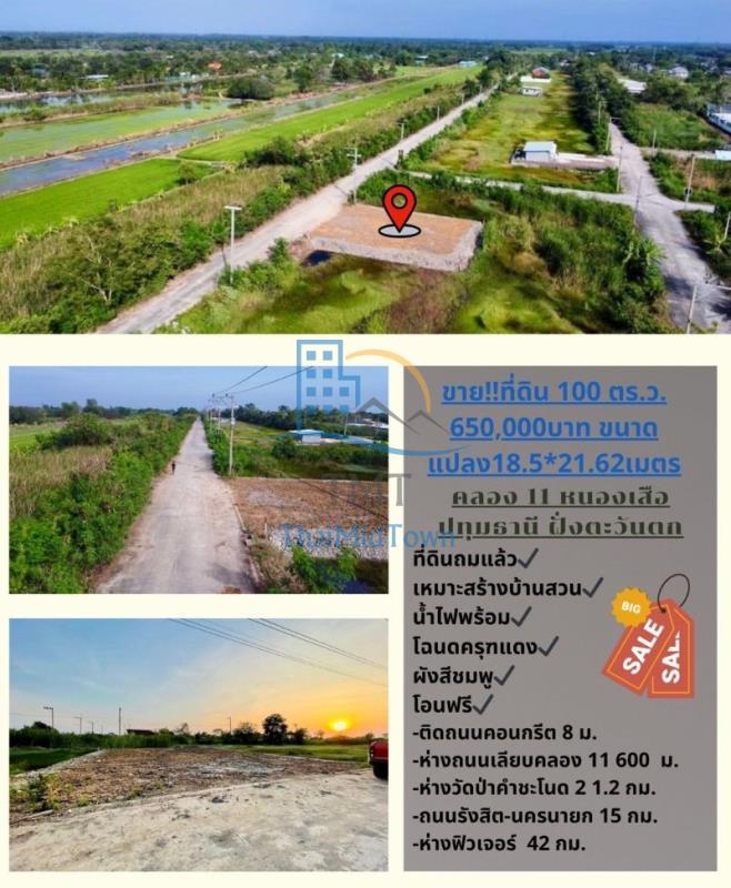 ขายที่ดินเปล่าถมแล้ว 1 ไร่ 3 งาน 97 ตร.ว. ซอยไอยรา34 หลังตลาดไท ตรงข้ามโรงเรียนเทศบาลท่าโขลง คลองสอง คลองหลวง ปทุมธานี
