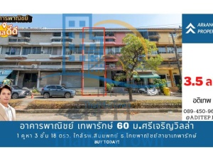 ขายอาคารพาณิชย์ เทพารักษ์ 60 ม.ศรีเจริญวิลล่า ขนาด 1 คูหา 3 ชั้นครึ่ง 18 ตรว. ใกล้รพ.สินแพทย์ ธนาคารไทยพาณิชย์สาขาเทพารักษ์