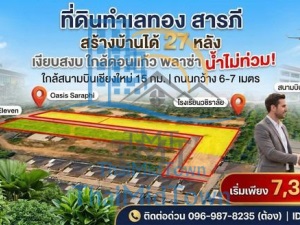 ที่ดิน สารภีเชียงใหม่ แหล่งชุมชน น้ำไม่ท่วม สร้างบ้านได้29หลัง ถนนคอนกรีตวว้าง6-7 เมตร ห่างจากอ.เมือง 10 กิโลเมตร