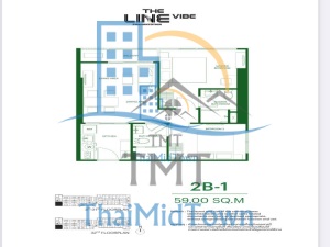 ขายดาวน์ The Line Vibe แบบ 2 ห้องนอน 2 ห้องน้ำ (2B-1) ขนาด 59 ตรม. ชั้น 32 ทิศใต้