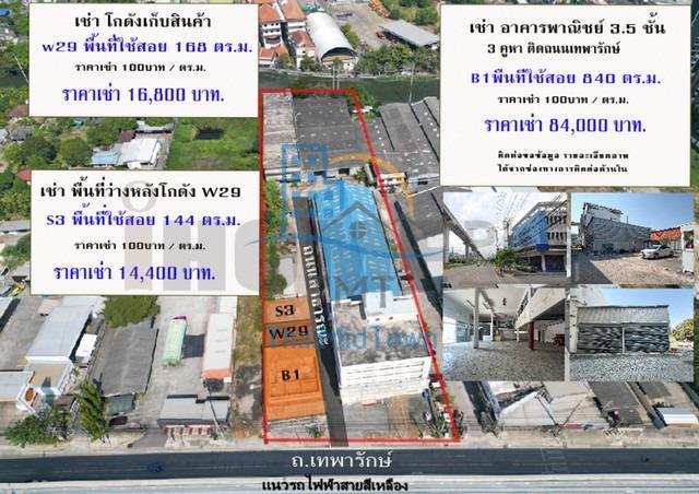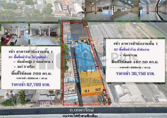 อาคาร สำนักงาน อาคารพาณิชย์ โกดังสินค้า ที่จอดรถ ติดถนนเทพารักษ์ ใกล้ สถานีรถไฟฟ้าสีเหลือง สถานีทิพวัล ซอย- ถนนเทพารักษ์ ต.เทพารักษ์ อ.เมืองสมุทรปราการ สมุทรปราการ