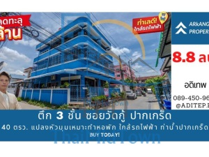 ขายด่วน! ตึก 3 ชั้น 40 ตรว. แปลงหัวมุม ซ.วัดกู้ ปากเกร็ด ทำเลทอง เหมาะทำหอพัก ใกล้รถไฟฟ้าสายสีชมพู! ท่าน้ำปากเกร็ด